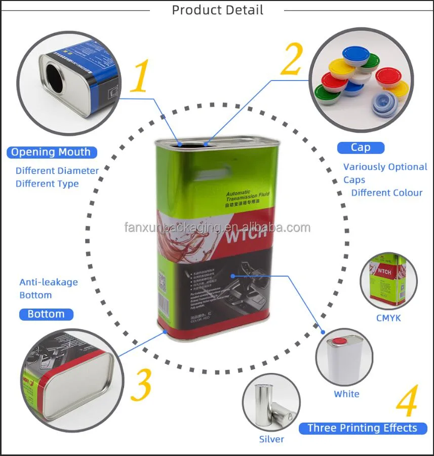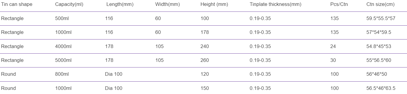 4L rectangular empty metal containers