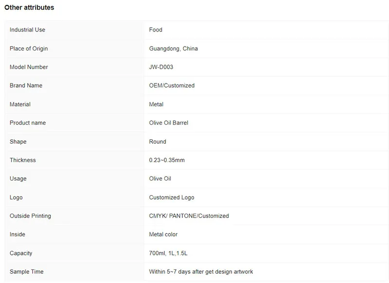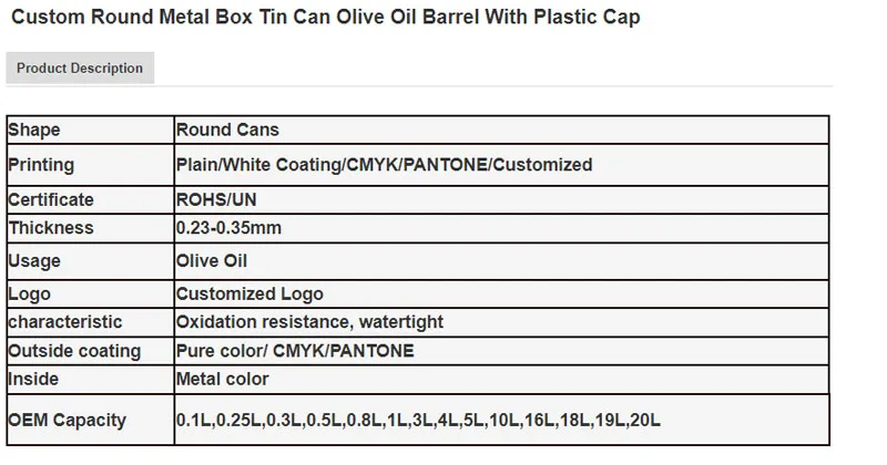Custom Round Metal Box Tin Can Olive Oil Barrel