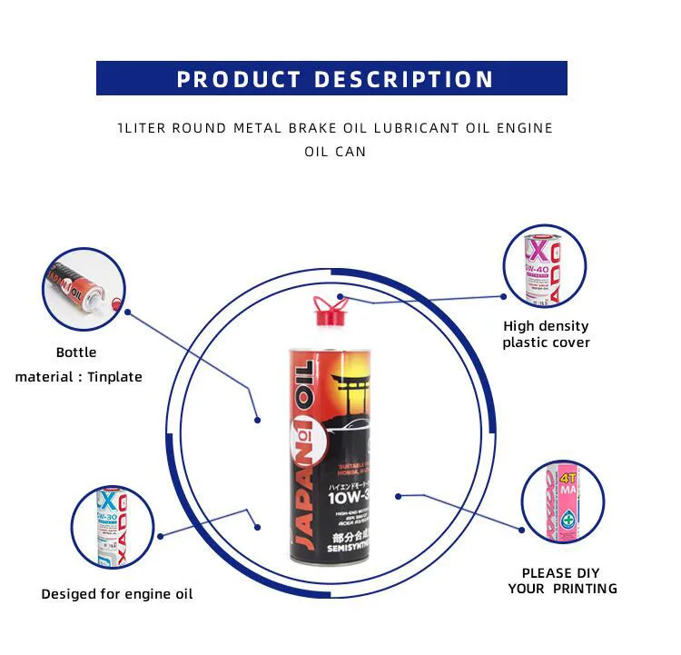 Wholesale empty Liquide de frein DOT 3 can round Brake Fluid Tin cans 250ml 350ml 500ml 1 liter