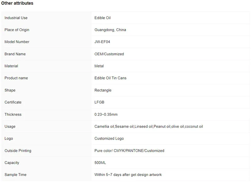 Well Sealed Square Tin can packing for Edible Oil 500ML Metal oil Catch Can