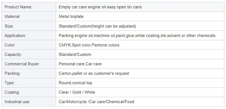 China factory made small 100ml lubricating oil tin can customized easy open tinplate can