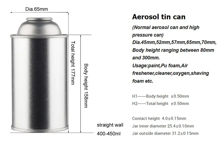 Factory customization diameter Metal Aluminum Cleaner for aerosol cans