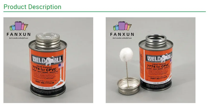 8 oz & 247ml sealing type custom logo and decorations PVC glue adhesive can with cotton ball and brush in the screw cover