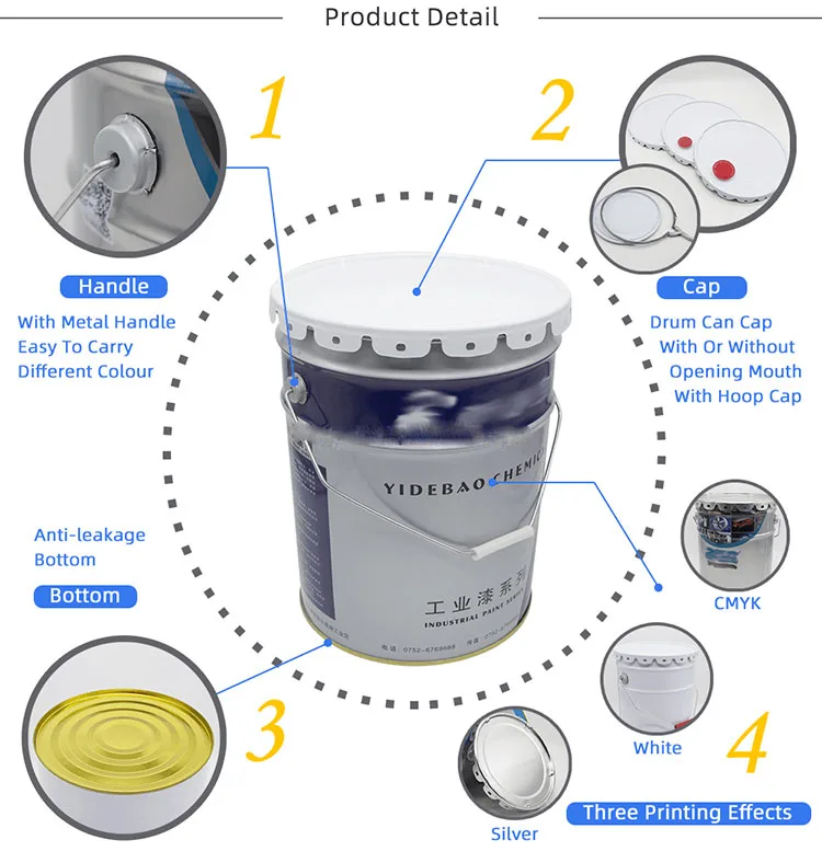 5 Gallon metal china manufacturer paint tin bucket sizes 20 liter metal pail with lock ring lid and plastic handle